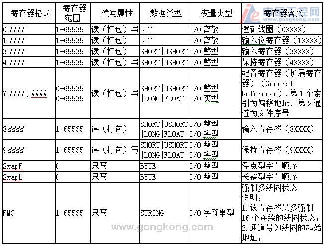 組態(tài)王中寄存器列表如下: