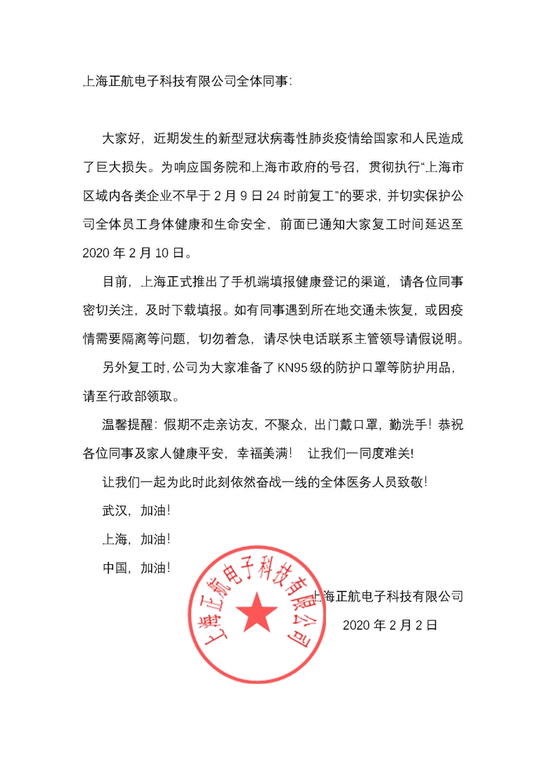 勠力同心抗疫情 共克時(shí)艱渡難關(guān)—致全體正航人