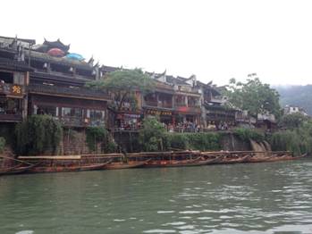 經(jīng)過幾個小時的飛行顛簸,我們一行來到具有“中國最美麗的小城”之稱的鳳凰古城,鳳凰古城因有一山酷似展翅而飛的鳳凰。在沈從文的《邊城》一書中,有這樣一段描述鳳凰:“若從一百年前某種較舊一點的地圖上尋找,當(dāng)可有黔北、川東、湘西一處極偏僻的角隅上,發(fā)現(xiàn)一個名為“鎮(zhèn)竿”的小點,那里同別的小點一樣,事實上應(yīng)當(dāng)有一個城市,在那城市里,安頓下三五千人口……”這就是古城鳳凰。