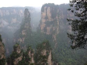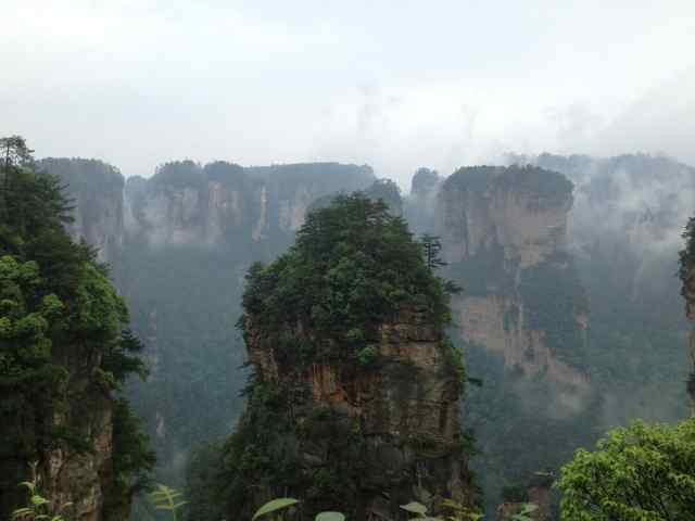 名山大川見識過不少,自以為天下之山不過爾爾,但這里的的山還是讓我大吃一驚,你能想象每座山就像棵棵樹拔地而起么?張家界的山就是這樣以奇險俊美征服世人的。人在纜車凌空飛揚,伴著云煙繚繞,羽化登仙不過如此。