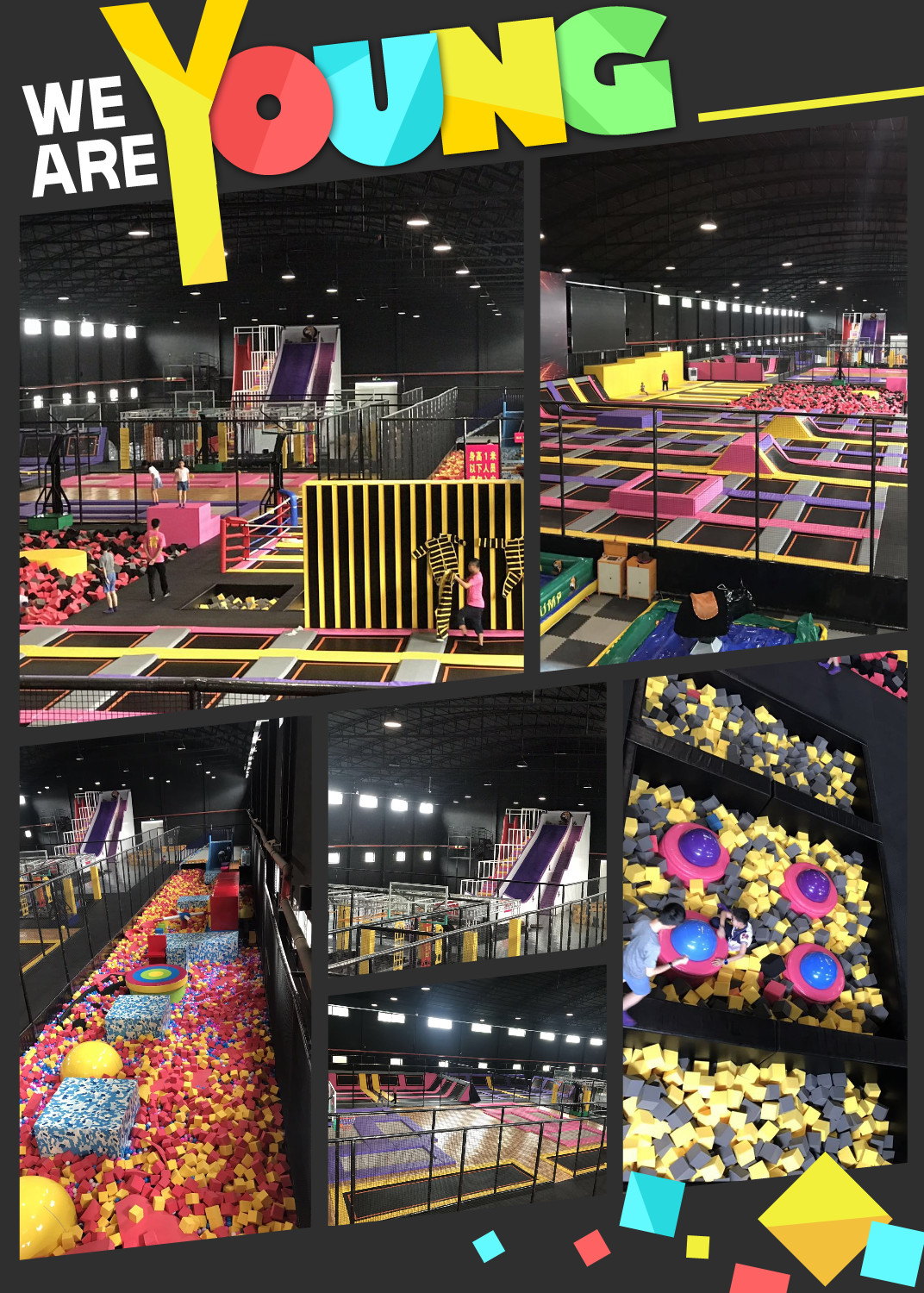 不曾想天公不作美,活動當(dāng)天下起了HUAHUA大雨,但這絲毫沒有動搖我們?nèi)ネ娴臎Q心,趕公交、坐地鐵,然后TUATUA踏一路積水終于趕到活動場所。場館工作人員熱情招待了我們,寄存東西、換防滑襪、做熱身運(yùn)動一氣呵成。進(jìn)入活動區(qū)內(nèi),先來個跳跳高比賽,頃刻間仿佛地心引力消失,這一蹦堪比伊辛巴耶娃附體,破世界記錄so easy,一時得意來個連連跳,誰知腿上一軟身體控制不住,甩將出去,五體投地。故作鎮(zhèn)定狼狽爬起,準(zhǔn)備接受嘲笑,卻見眾人蹦跳散去,連忙收拾表情做優(yōu)雅狀追隨而去。