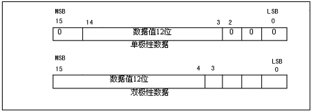 注意:模數(shù)轉(zhuǎn)換器(ADC)的12位讀數(shù),其數(shù)據(jù)格式是左端對齊的。最高有效位是符號位(0表示正數(shù)),對
