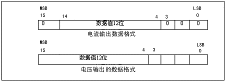 注意:數(shù)模轉(zhuǎn)換器(DAC)的12位讀數(shù),其輸出數(shù)據(jù)格式是左端對(duì)齊的,最高有效位是符號(hào)位(0表示是正數(shù)),數(shù)據(jù)在裝載到DAC寄存器之前,4個(gè)連續(xù)的0是被裁斷的,這些位不影響輸出信號(hào)值。